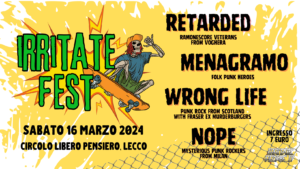 F: It’s Wrong Life’s first Italian show, and most likely our only one this year. If that’s not a good enough reason, then I’ll be giving a euro to one randomly selected person in the crowd at Irritate Fest. It could be your lucky day.